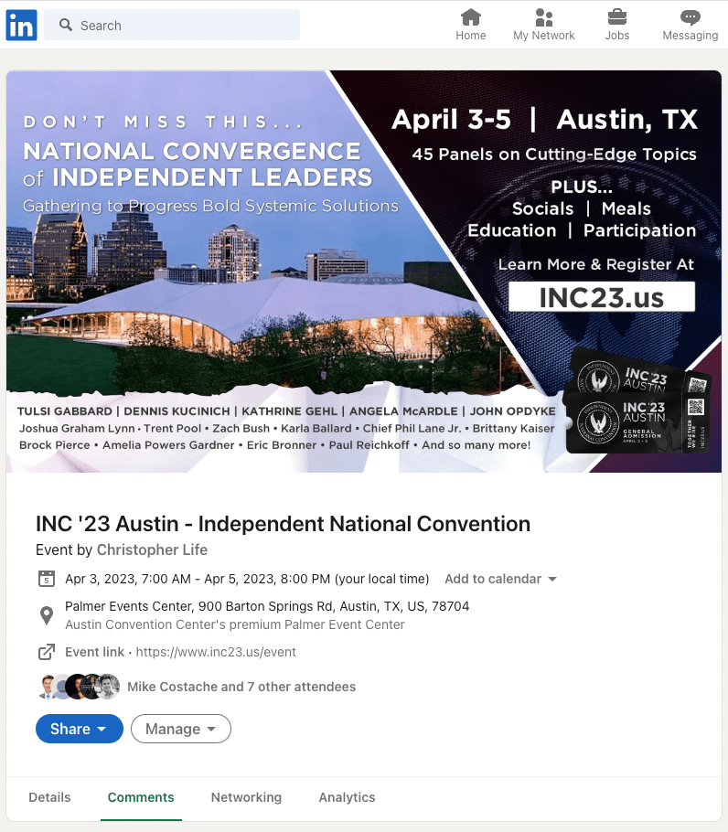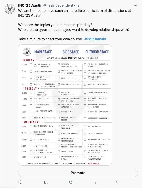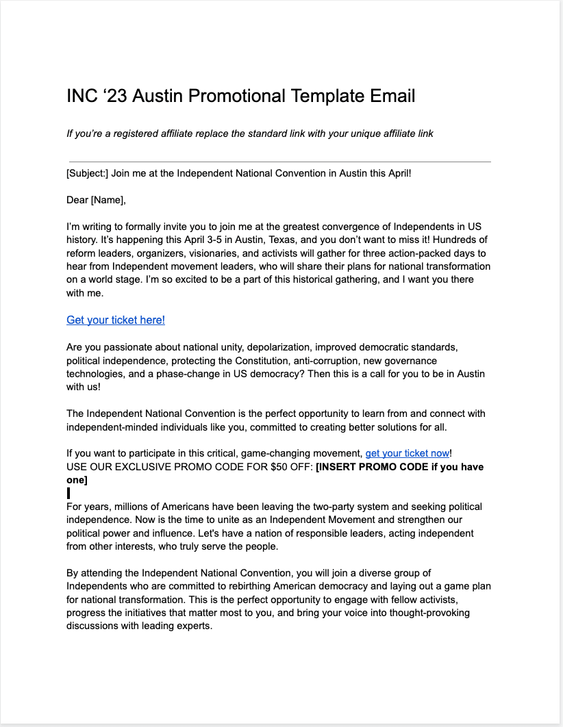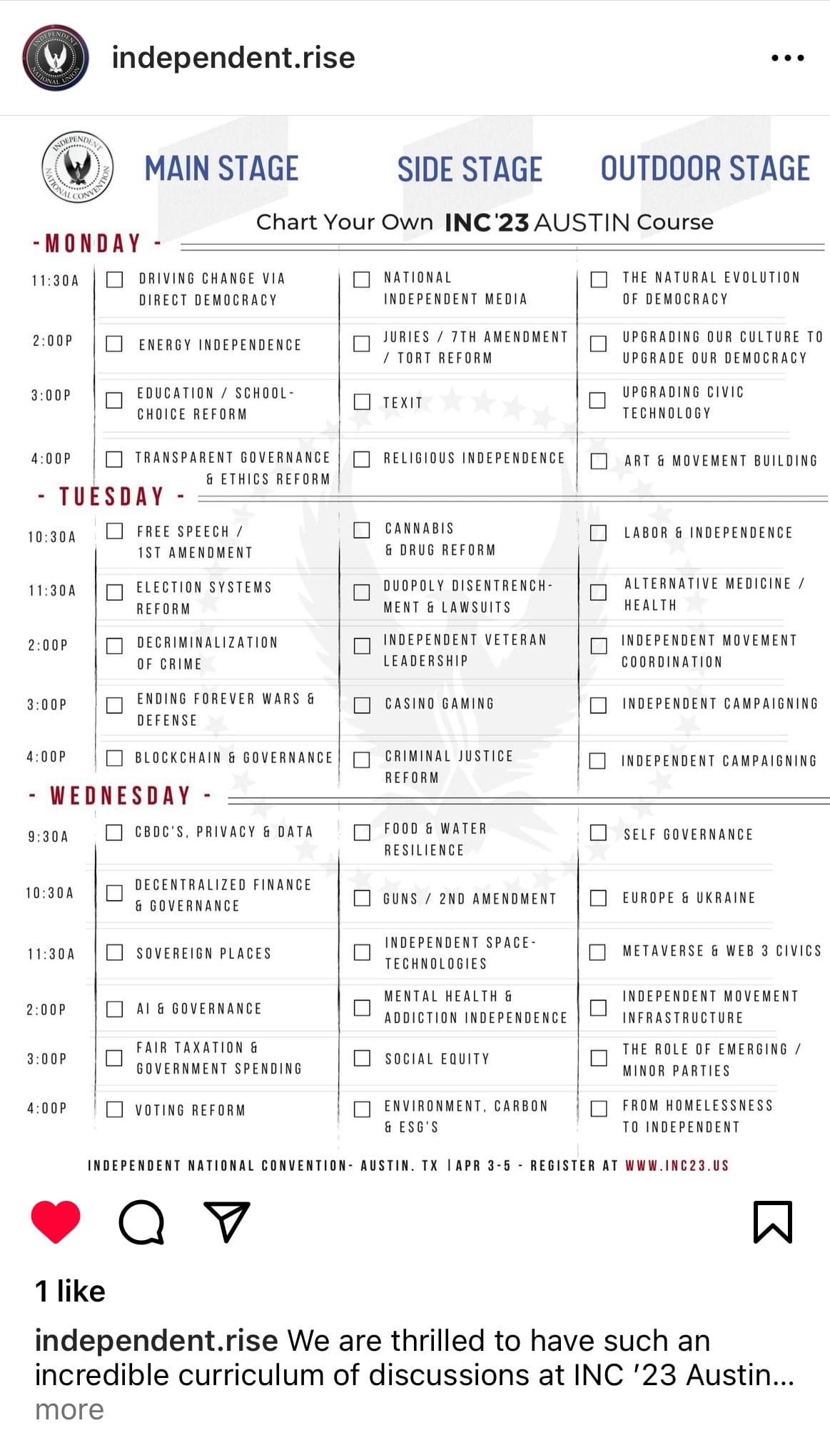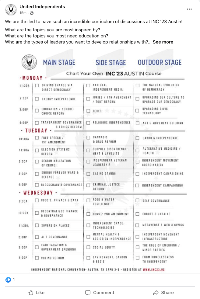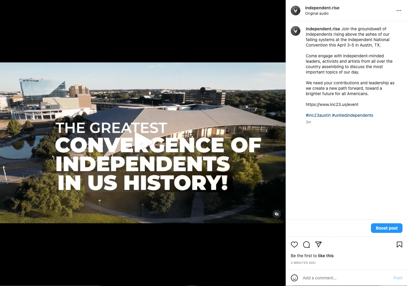Thank you for your support in helping to promote this upcoming national Independent leadership convergence.